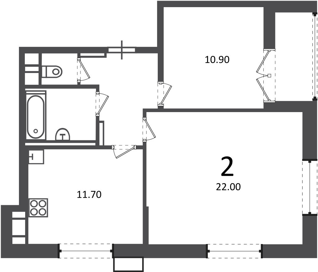 Оконные блоки в комнатах выполнены из ПВХ с двухкамерными стеклопакетами.