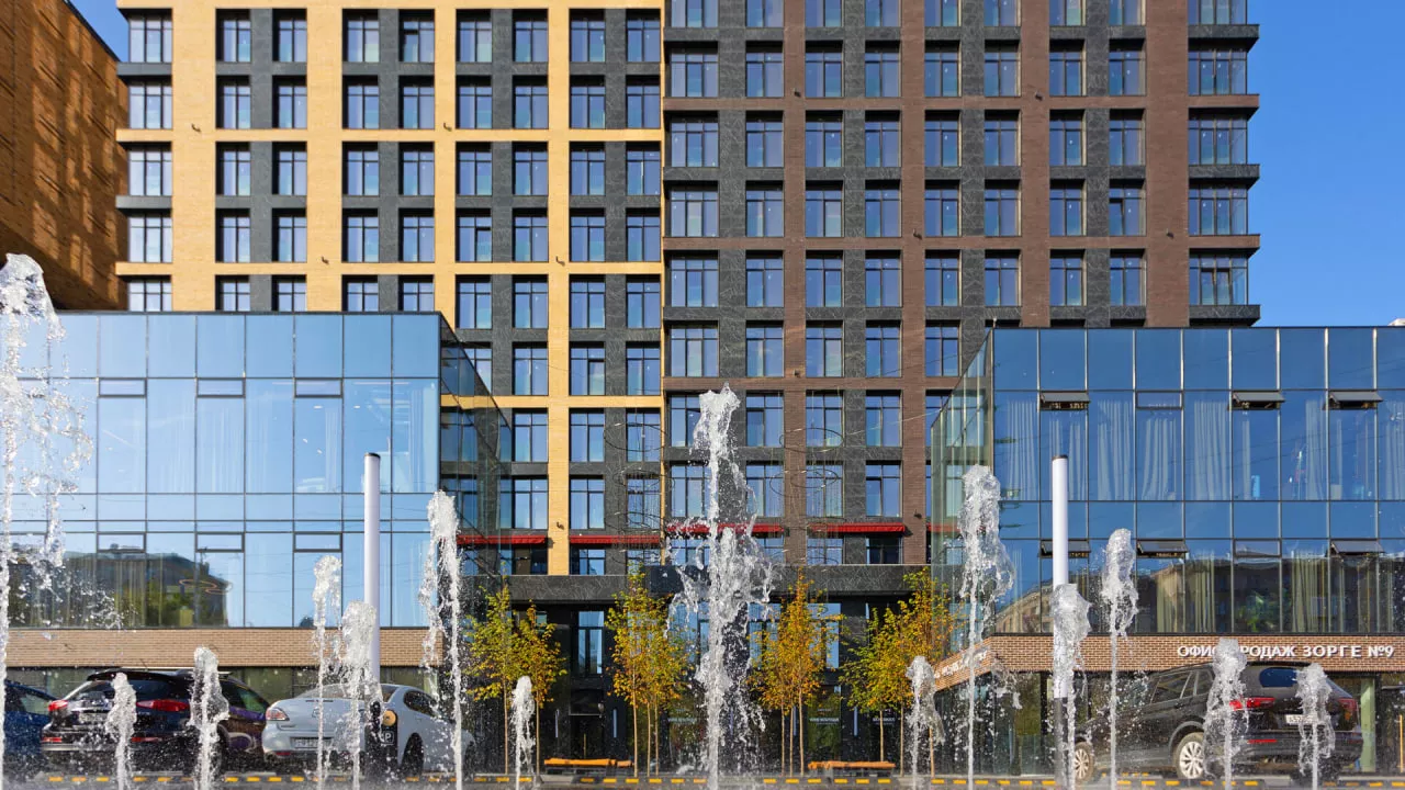 ЖК Зорге 9 - это современность и классика, великолепные лобби и подземный паркинг, прекрасная инфраструктура района. Дома бизнес-класса олицетворяют особый стиль и образ жизни престижного Хорошёвского района. Здесь удачно сочетаются старинная Москва и динамичный современный мегаполис. При строительстве использованы только дорогие и качественные материалы. Роскошное лобби каждого корпуса с высокими потолками и безупречными интерьерами, уютной зоной отдыха с камином и дизайнерской мебелью и приглушенным светом от эксклюзивных люстр и светильников. Просторный внутренний двор, свободный от машин и закрытый от посторонних, разделен на несколько зон, ориентированных на жителей разного возраста и интересов. Собственный парк в 1 га, детские и спортивные площадки, собственный стадион и обилие мест для отдыха, площадь искусств и амфитеатр, Музей народных промыслов на территории ЖК. Пространство комплекса создано специально для полноценного семейного досуга. В комплексе Зорге 9 развита собственная торгово-сервисная инфраструктура. На первых этажах разместятся магазины, супермаркет, аптека, парикмахерская, отделение банка, пункт химчистки и многопрофильный медицинский центр. Расположенные в нескольких минутах ходьбы от комплекса уютная Березовая Роща, современный парк Ходынского поля, классический Петровский парк, бескрайние Серебряный Бор и парк Фили дают прекрасную возможность для семейного отдыха, прогулок, развлечений и занятий спортом в любое время года. В окрестностях Зорге 9 множество детских садов, школ и высших образовательных учреждений. Ближайшие садик и школа расположены через дорогу. Любителям спорта придется по душе близость спортивных арен: футбольный и хоккейный стадионы ЦСКА, ВТБ Арена, дворец Мегаспорт, Академия спорта Динамо, Академия тенниса Шамиля Тарпищева. Мир шопинга и развлечений с более чем 500 магазинами, кафе, ресторанами и кинотеатрами рядом с ЖК Зорге 9: крупнейший в Европе торгово-развлекательный комплекс Авиапарк в 10 минутах ходьбы и всего 7 минут до нового ТРЦ Хорошо.