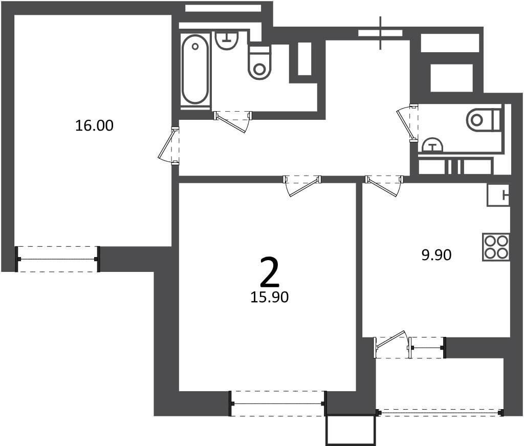 прихожей, большой кухней и санузлом