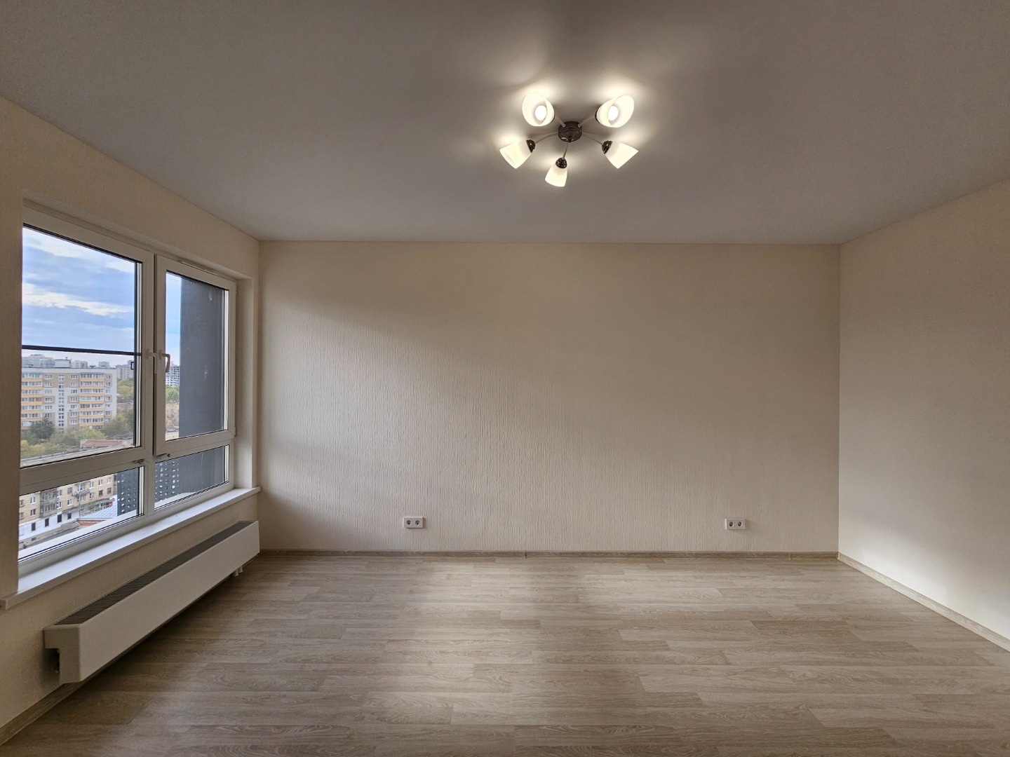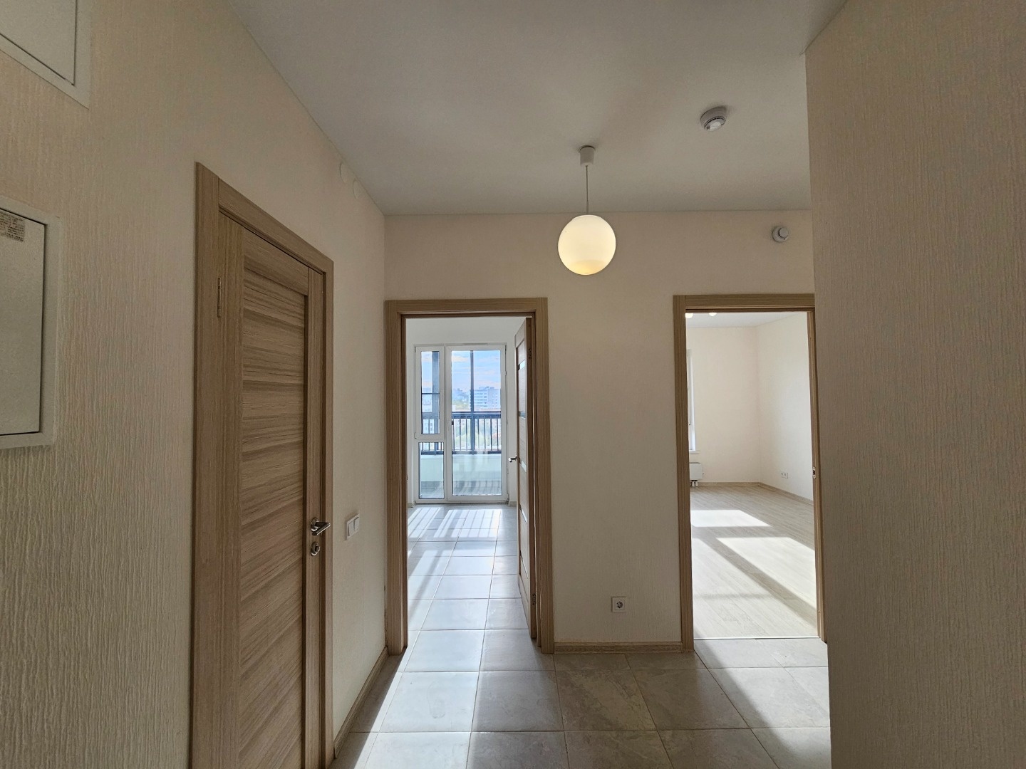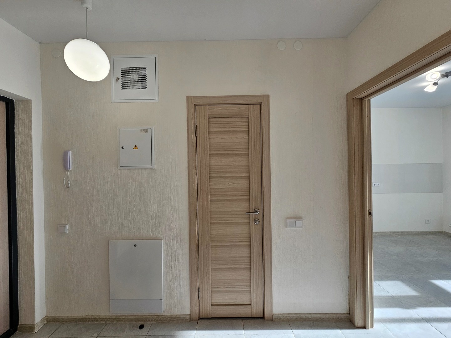 Обои. Ламинат, и плитка светлых оттенков