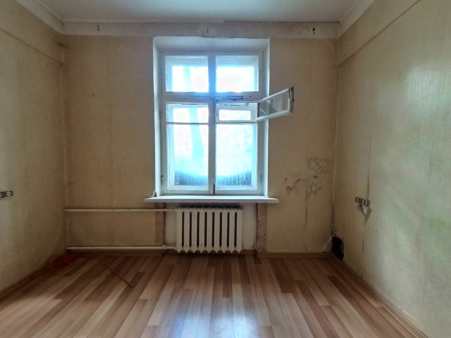 Комната с косметическим ремонтом. Благоустроенный двор с детскими и спортивными площадками. Во дворе высажены деревья, цветы и кустарники.